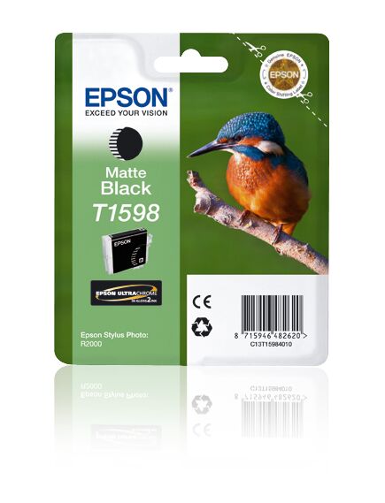 Epson T1598 Matte Black. Τύπος: Πρωτότυπο, Τύπος μελανιού: Μελάνι με πιγμέντο, Χρώματα δοχείων μελανιού: Μαύρο μεταλλίνης. Πλάτος συσκευασίας: 145 mm, Βάθος συσκευασίας: 33 mm, Ύψος συσκευασίας: 120 mm. Πλάτος παλέτας: 80 cm, Μέγεθος παλέτας: 120 cm, Ύψος παλέτας: 191 cm