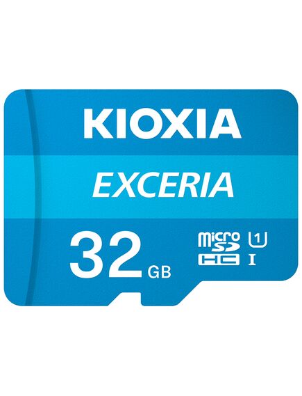 Kioxia Exceria. Χωρητικότητα: 32 GB, Τύπος κάρτας flash: MicroSDHC, Κατηγορία μνήμης φλας: Κατηγορία 10, Τύπος μνήμης: UHS-I, Ταχύτητα ανάγνωσης, μέσων: 100 MB/s, Κατηγορία ταχύτητας UHS: Class 1 (U1). Χαρακτηριστικά προστασίας: Αντικραδασμικό, Αδιάβροχο, Προστασία ακτίνων Χ, Χρώμα προϊόντος: Μπλε