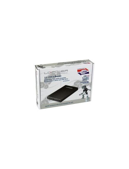 LC-Power LC-25U3-Becrux. Αριθμός υποστηριζόμενων οδηγών αποθήκευσης: 1, Μέγεθος μονάδας αποθήκευσης: 2.5", Υποστηριζόμενες διεπαφές συσκευών αποθήκευσης: SATA, Serial ATA II, Serial ATA III. Ρυθμός μεταφοράς δεδομένων: 5 Gbit/s. Χρώμα προϊόντος: Μαύρος (Μαύρο)