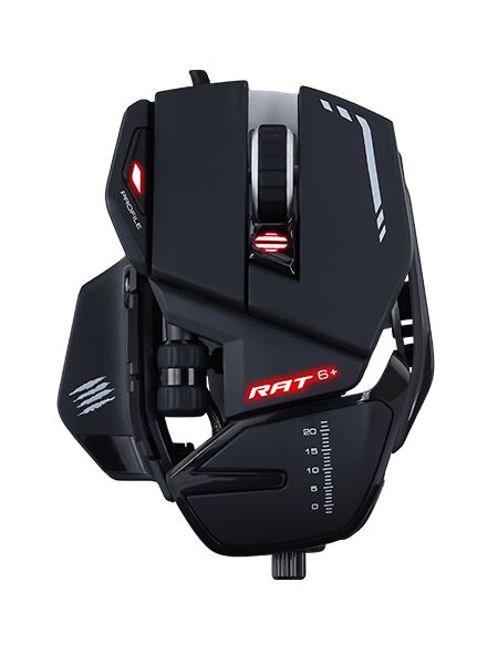 Mad Catz R.A.T. 6+. Τύπος μορφής: Δεξιού χεριού. Τεχνολογία ανίχνευσης κίνησης: Οπτικός, Διασύνδεση συσκευής: USB Τύπου-A, Ανάλυση κίνησης: 12000 DPI, Ρυθμός καρέ: 12000 fps, Τύποι πλήκτρων: Πλήκτρα πατήματος, Αριθμός κουμπιών: 11, Τύπος κύλισης: Τροχός, Επιτάχυνση (μέγ.): 50 G. Χρώμα φωτισμού: Κόκκινο/Πράσινο/Μπλε, Χρώμα προϊόντος: Μαύρος (Μαύρο)