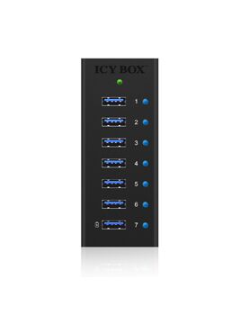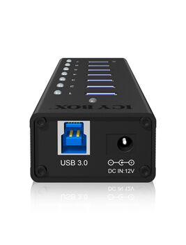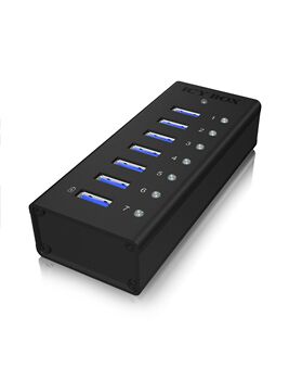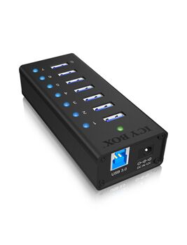 ICY BOX IB-AC618. Διασυνδέσεις διανομέα: USB 3.2 Gen 1 (3.1 Gen 1) Type-A. Ρυθμός μεταφοράς δεδομένων: 5000 Mbit/s, Χρώμα προϊόντος: Μαύρος (Μαύρο), Υλικό περιβλήματος: Αλουμίνιο (Αργύλιο). Τάση εισόδου: 100 - 240 V. Πλάτος: 110 mm, Βάθος: 45 mm, Ύψος: 25 mm. Πλάτος συσκευασίας: 140 mm, Βάθος συσκευασίας: 85 mm, Ύψος συσκευασίας: 85 mm