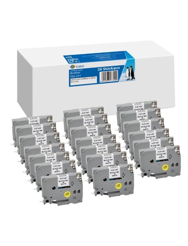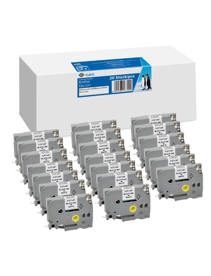 20x G&G Schriftband 9mm x 8m sw- ws komp. m. Brother TZe-221