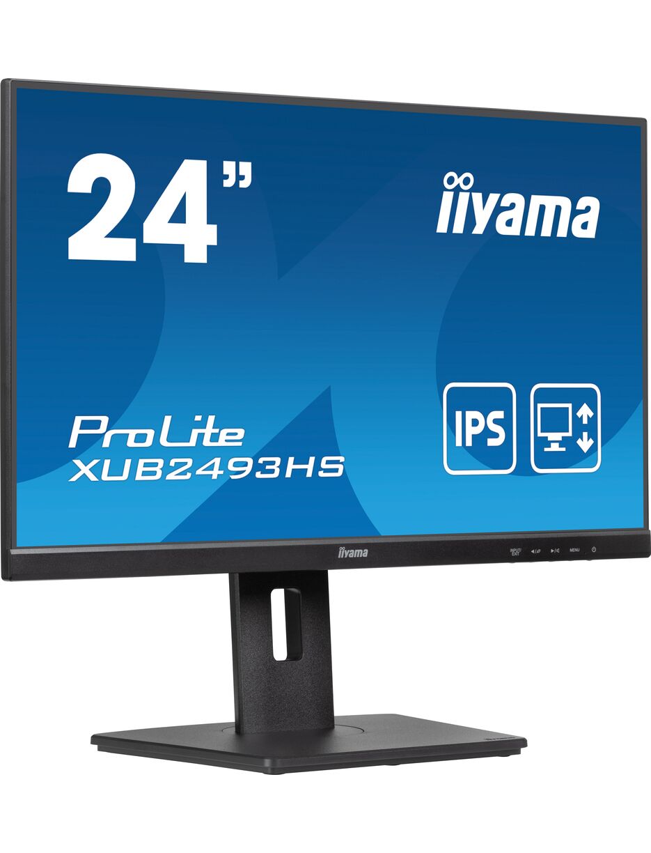 iiyama ProLite XUB2493HS-B6. Μέγεθος οθόνης: 60,5 cm (23.8"), Βήμα εικονοστοιχείων: 1920 x 1080 εικονοστοιχεία, Τύπος HD: Full HD, Τεχνολογία οθόνης: LED, Επιφανεία απεικονίσεως: Ματ, Χρόνος απόκρισης ανανέωσης: 0,5 ms, Εγγενής αναλογία εικόνας: 16:9, Γωνία θέασης, οριζόντια: 178°, Γωνία θέασης, κατακόρυφη: 178°. Ενσωματωμένα ηχεία. Ανάρτηση VESA, Ρύθμιση ύψους. Χρώμα προϊόντος: Μαύρος (Μαύρο)