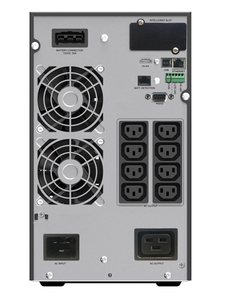 PowerWalker VFI 3000 ICT IoT. UPS τοπολογία: Διπλή μετατροπή (Online), Χωρητικότητα εξόδου ισχύος (VA): 3000 VA, Ισχύς εξόδου: 3000 W. Τύποι πρίζας AC: C13 σύνδεσμος, C19 σύνδεσμος, Ρευματολήπτης: C20 σύνδεσμος, Ποσότητα θηρών AC: 9 Έξοδος (οι) εναλλασσόμενου ρεύματος. Χωρητικότητα μπαταρίας: 9 Ah, Τάση μπαταρίας: 12 V, Δυνατότητα επαναφόρτισης μπαταρίας: 3 h. Τύπος μορφής: Tower, Χρώμα προϊόντος: Μαύρος (Μαύρο), Τύπος ψύξης: Ενεργός. Πλάτος: 192 mm, Βάθος: 428 mm, Ύψος: 318 mm