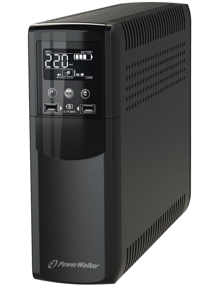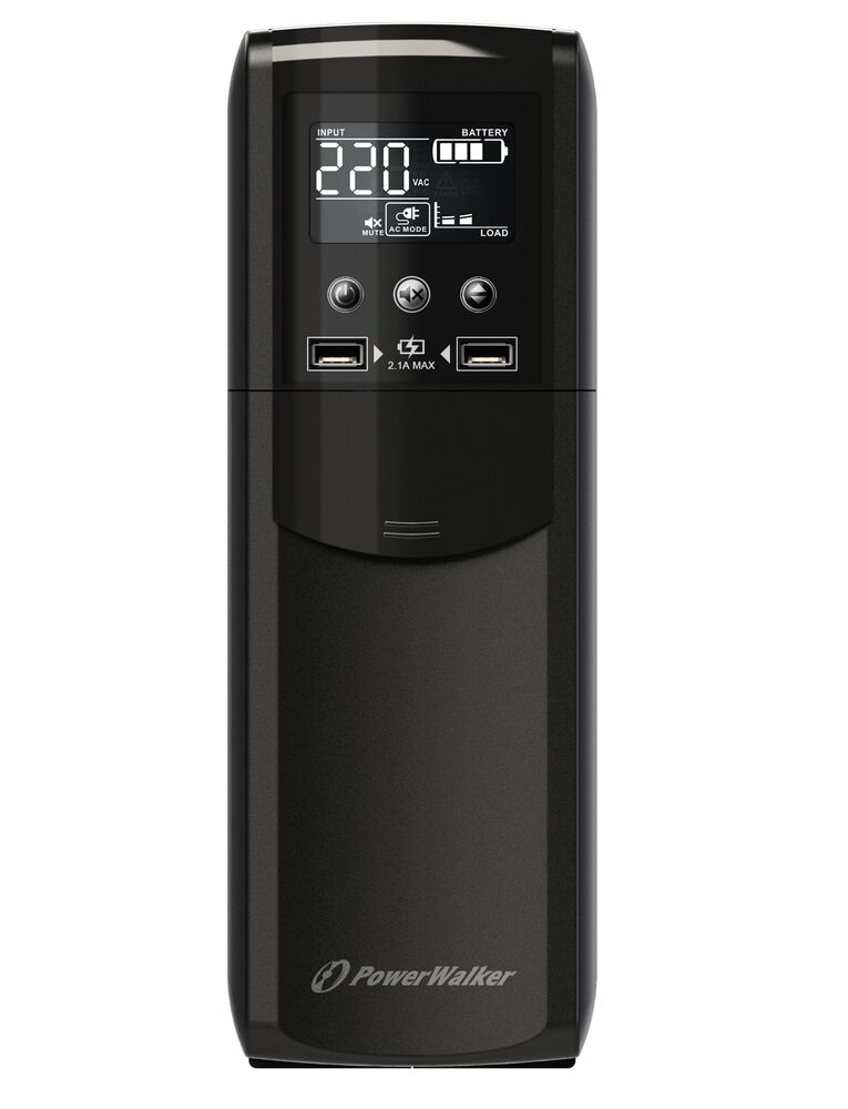 PowerWalker VI 1000 CSW. UPS τοπολογία: Line-Interactive, Χωρητικότητα εξόδου ισχύος (VA): 1000 VA, Ισχύς εξόδου: 600 W. Τύποι πρίζας AC: Τύπος F, Ποσότητα θηρών AC: 4 Έξοδος (οι) εναλλασσόμενου ρεύματος, Διασύνδεση SCSI: RJ-45. Χωρητικότητα μπαταρίας: 10 Ah, Τάση μπαταρίας: 12 V, Δυνατότητα επαναφόρτισης μπαταρίας: 8 h. Τύπος μορφής: Tower, Χρώμα προϊόντος: Μαύρος (Μαύρο), Τύπος οθόνης: LCD. Πλάτος: 99 mm, Βάθος: 288 mm, Ύψος: 280 mm