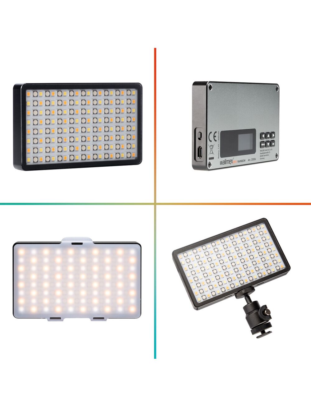 Walimex 23036. Συνολική ισχύς: 12 W, Τύπος λάμπας: LED, Διάρκεια ζωής λαμπτήρα: 50000 h. Χρώμα προϊόντος: Μαύρος (Μαύρο), Υλικό περιβλήματος: Μέταλο, Πλαστικός. Τύπος πηγής ρεύματος: Μπαταρία, Τεχνολογία μπαταρίας: Πολυμερές λιθίου (LiPo). Πλάτος συσκευασίας: 185 mm, Βάθος συσκευασίας: 65 mm, Ύψος συσκευασίας: 110 mm. Συμπεριλαμβάνονται καλώδια: USB Type-C