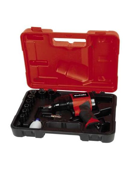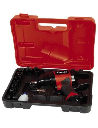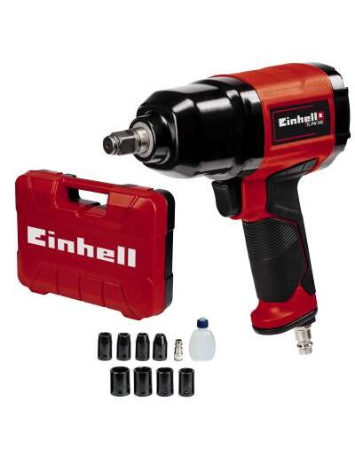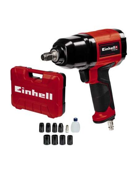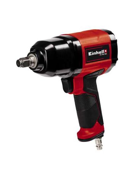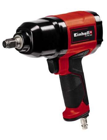 Einhell TC-PW 340. Τύπος προϊόντος: Κλειδί καστάνιας αέρα, Χρώμα προϊόντος: Μαύρος (Μαύρο), Κόκκινο. Ταχύτητα ρελαντί (μεγ): 7500 RPM, Μέγιστη ροπή: 340 Nm, Μέγιστη ροή αέρα: 142 l/min. Πηγή ισχύος: Συμπιεσμένος αέρας. Πλάτος: 82 mm, Βάθος: 346 mm, Ύψος: 255 mm