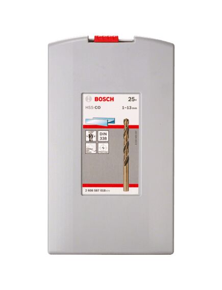 Bosch 2 608 587 018. Ορθή χρήση: Τρυπάνι, Τύπος τρυπανιού: Σετ τρυπανιών, Κατάλληλο για υλικά: Κράμα αλουμινίου, Χυτοσίδηρος, Non-alloyed steel, Ανοξείδωτο ατσάλι. Αριθμός τρυπανιών: 25 τεμάχια, Μεγέθη σετ τρυπανιών: 1,0 / 1,5 / 2,0 / 2,5 / 3,0 / 3,5 / 4,0 / 4,5 / 5,0 / 5,5 / 6,0 / 6,5 / 7,0 / 7,5 / 8,0 / 8,5 /...