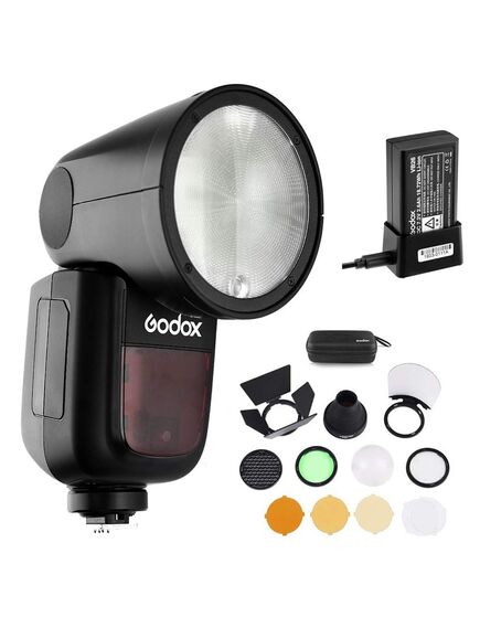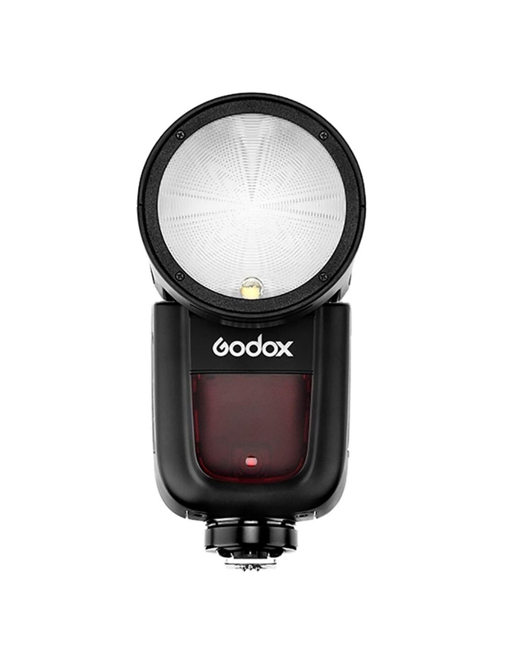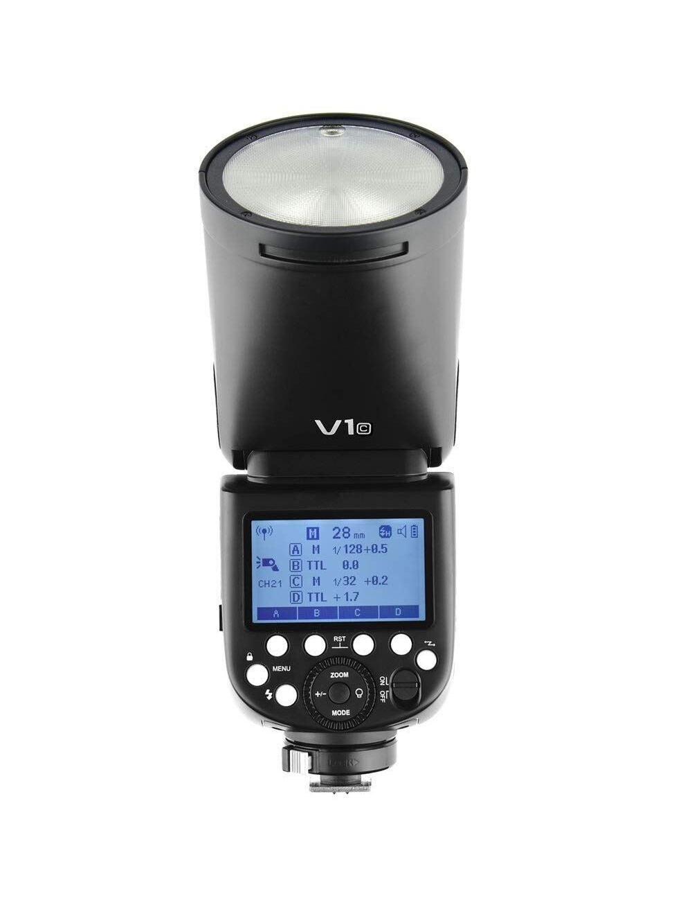 Godox V1-C. Τύπος: Compact flash, Χρώμα προϊόντος: Μαύρος (Μαύρο), Χρόνος ανακύκλωσης κατά προσέγγιση: 1,5 s. Τύπος τροφοδοτικού: Μπαταρία, Τύπος μπαταρίας: Ενσωματωμένος, Τάση εισόδου: 7.2 V. Πλάτος: 76 mm, Βάθος: 93 mm, Ύψος: 197 mm