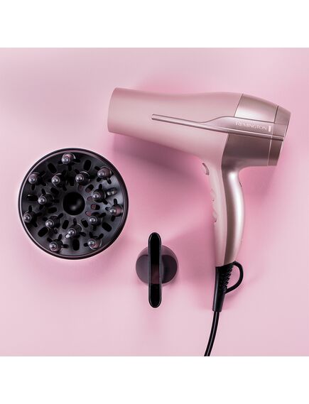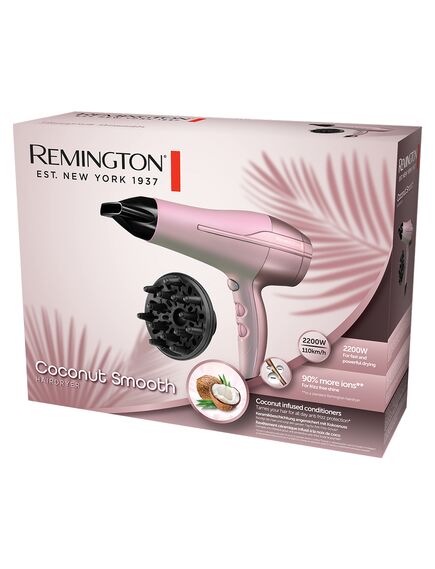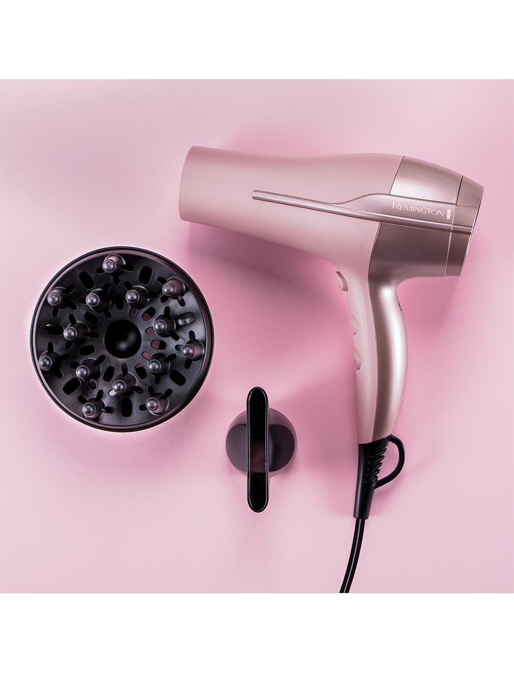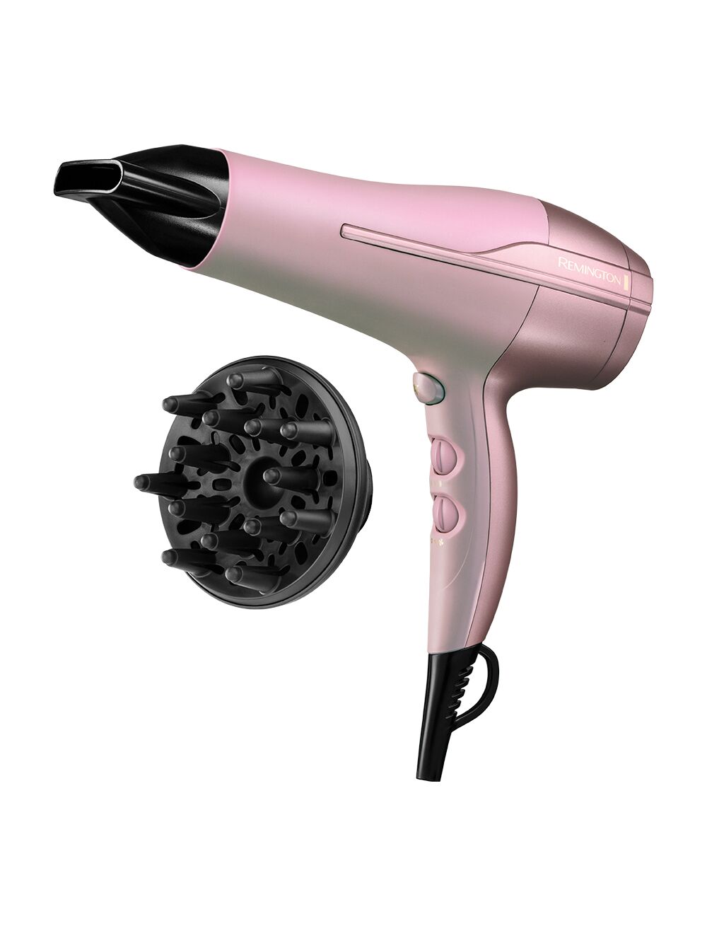 Remington D5901. Τύπος μηχανής: DC. Χρώμα προϊόντος: Ρόδο (Ροδόχρους), Χρωματισμός επιφάνειας: Μονόχρωμο, Κρεμαστού τύπου: Θηλιά. Ισχύς: 2200 W. Ποσότητα ανά συσκευασία: 1 τεμάχια, Τύπος συσκευασίας: Κουτί