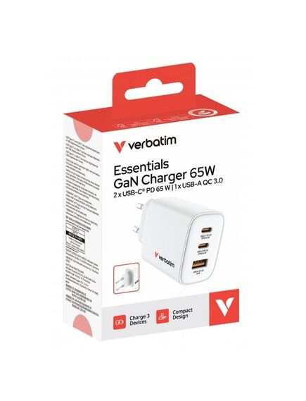 Verbatim Essentials GaN Charger 65W 2xUSB-C/1xUSB-A weiß 32353