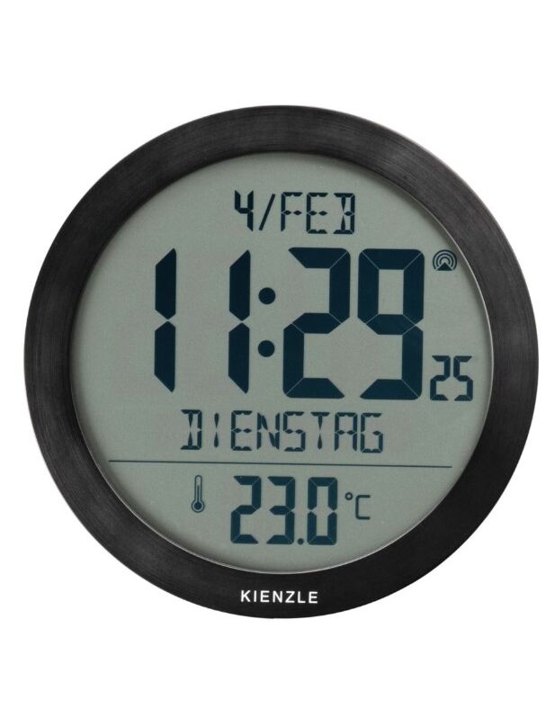 KIENZLE DCF Radio-Control. Wall Clock w. Room Temp.Display black