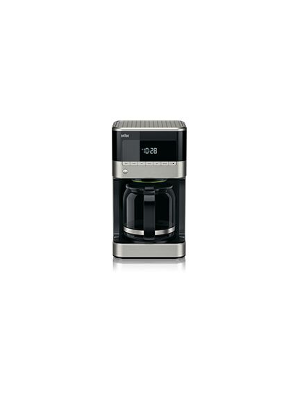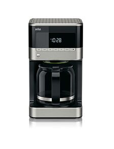 Braun KF 7120. Τύπος καφετιέρας: Ημι-αυτόματο, Τρόπος εισαγωγής καφέ: Αλεσμένος καφές, Δεξαμενή για καφέ: Κανάτα, Χωρητικότητα σε κούπες: 12 κύπελλα. Είδος οθόνης: LCD. Ισχύς: 1000 W. Χρώμα προϊόντος: Μαύρος (Μαύρο), Ανοξείδωτο ατσάλι