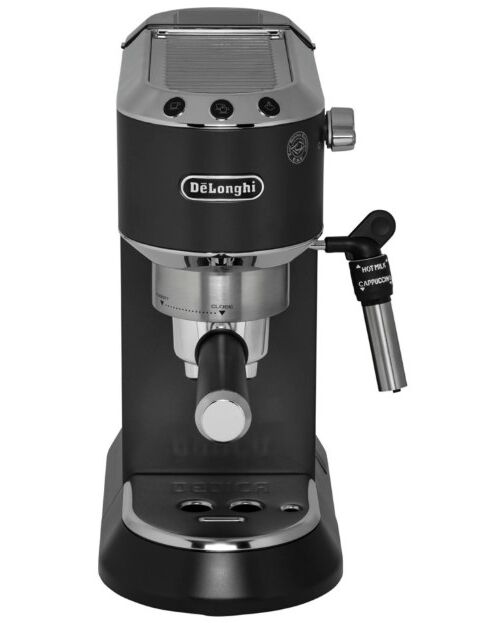 DeLonghi Dedica Style EC 685.BK. Τύπος προϊόντος: Μηχανή εσπρέσο, Τύπος καφετιέρας: Εγχειρίδιο, Χωρητικότητα δεξαμενής νερού: 1,1 L, Τρόπος εισαγωγής καφέ: Αλεσμένος καφές, Δεξαμενή για καφέ: Κούπα, Χωρητικότητα σε κούπες: 2 κύπελλα. Ισχύς: 1300 W. Χρώμα προϊόντος: Μαύρος (Μαύρο), Xρώμιο, Ανοξείδωτο ατσάλι