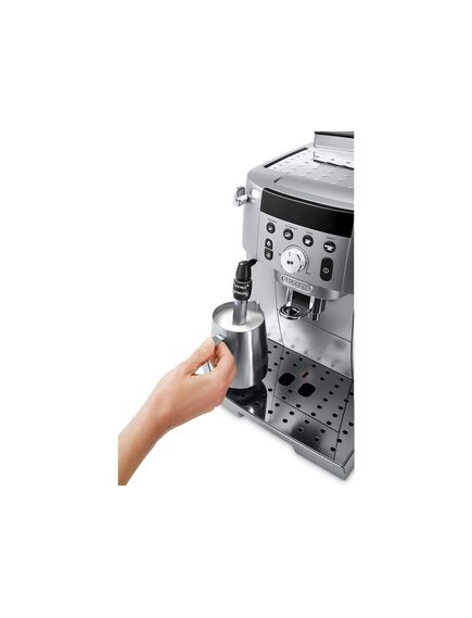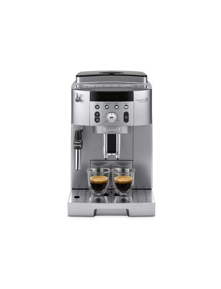 De’Longhi Magnifica S ECAM250.31.SB. Τύπος προϊόντος: Μηχανή εσπρέσο, Τύπος καφετιέρας: Πλήρως αυτόματο, Τρόπος εισαγωγής καφέ: Κόκκοι καφέ, Δεξαμενή για καφέ: Κούπα, Χωρητικότητα σε κούπες: 2 κύπελλα, Ενσωματωμένος μύλος. Ισχύς: 1450 W. Χρώμα προϊόντος: Άργυρος
