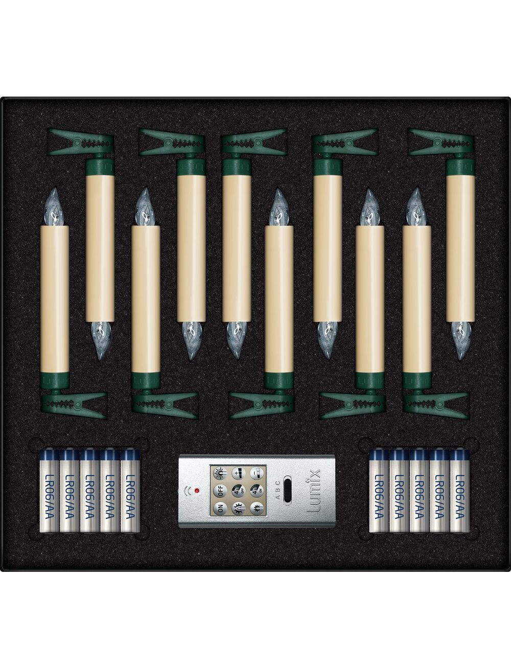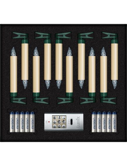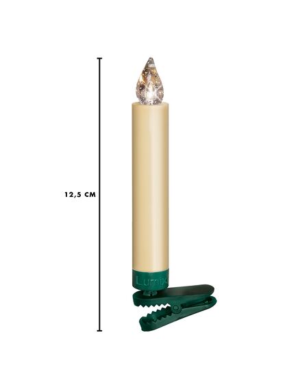 Krinner 74422. Τύπος προϊόντος: Γιρλάντα, Χρώμα προϊόντος: Φιλντισένιος, Χρωματισμός: Μονόχρωμο. Τύπος πηγής ρεύματος: Μπαταρία, Τύπος μπαταρίας: AA. Ύψος: 125 mm. Ποσότητα ανά συσκευασία: 10 τεμάχια, Τύπος συσκευασίας: Κουτί