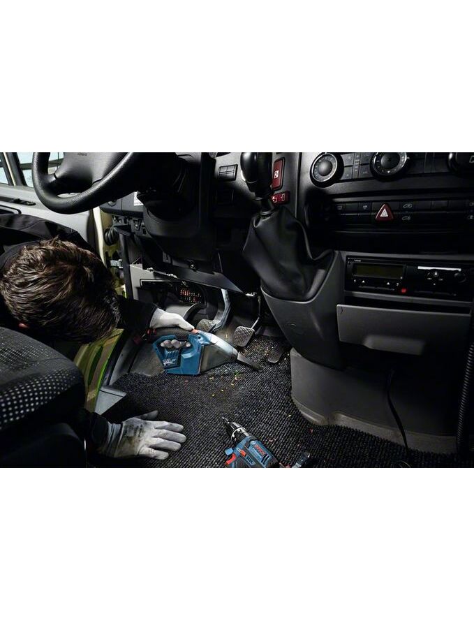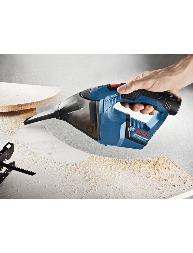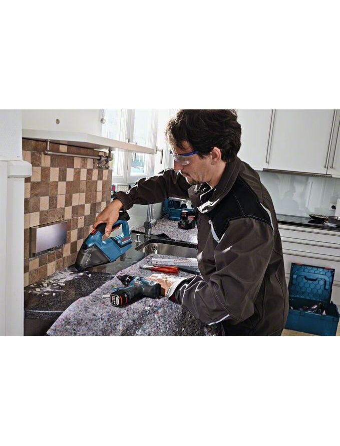 Bosch GAS 10,8 V-LI. τύπος καθαρισμού: Στεγνός, Μέθοδος διαχωρισμού ρύπων: Φιλτράρισμα, Ροή αέρα: 900 l/min. τύπος κάδου σκόνης: Χωρίς σακούλα, Χρώμα προϊόντος: Μπλε. Πλάτος: 77 mm, Βάθος: 273 mm, Ύψος: 170 mm. Χωρητικότητα σκόνης: 0,35 L
