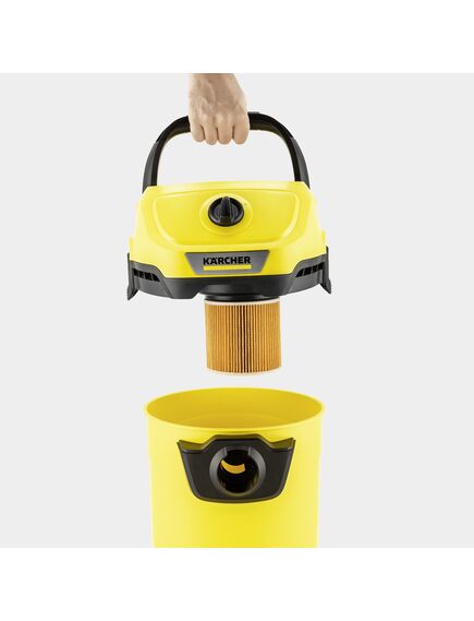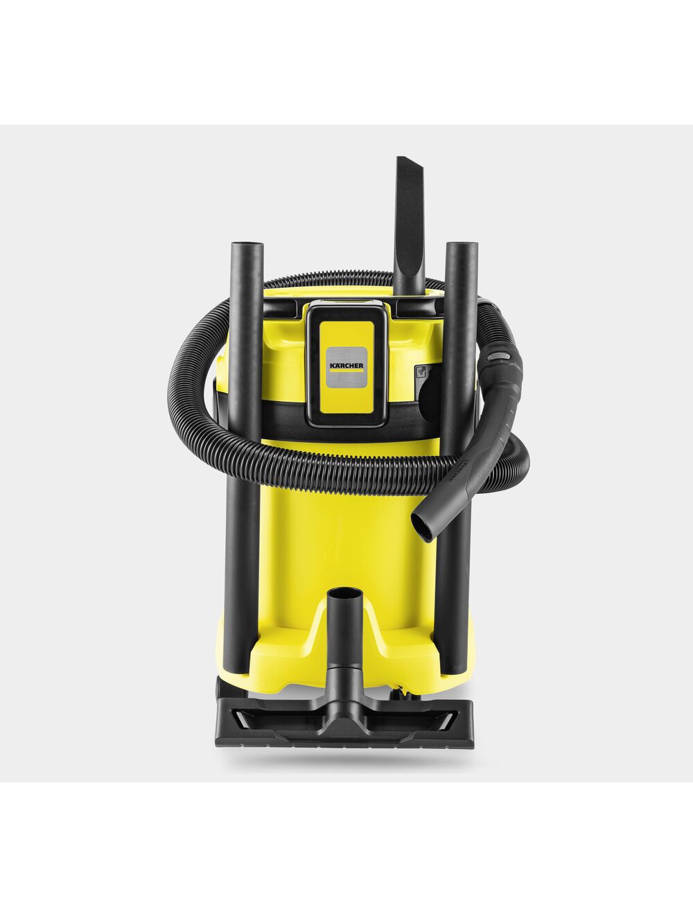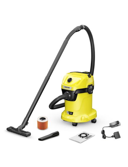 Kärcher WD 3-18. Μέγιστη ισχύς εισόδου: 225 W. Τύπος: Στρογγυλός κάδος, τύπος καθαρισμού: Στεγνός και υγρός, τύπος κάδου σκόνης: Σακούλα για τα σκουπίδια, Χωρητικότητα σκόνης: 17 L. Φίλτρο αέρος εισρόφησης: Ύφασμα, Μέθοδος διαχωρισμού ρύπων: Φιλτράρισμα. Χρώμα προϊόντος: Μαύρος (Μαύρο), Κίτρινο