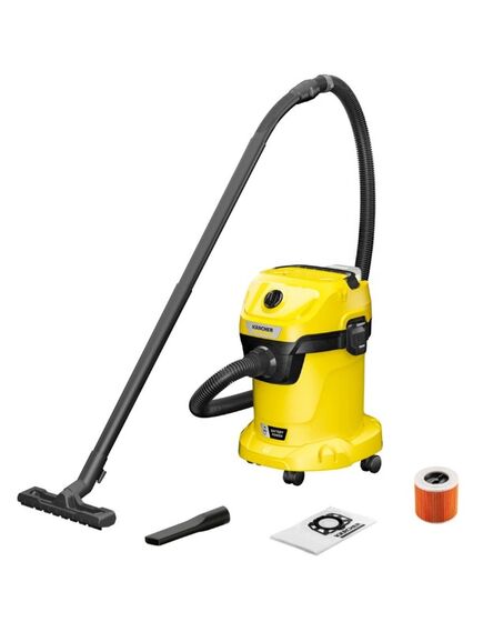 Kärcher WD 3-18. Μέγιστη ισχύς εισόδου: 225 W. Τύπος: Στρογγυλός κάδος, τύπος καθαρισμού: Στεγνός και υγρός, τύπος κάδου σκόνης: Χωρίς σακούλα, Χωρητικότητα σκόνης: 17 L. Φίλτρο αέρος εισρόφησης: Ύφασμα, Μέθοδος διαχωρισμού ρύπων: Φιλτράρισμα. Χρώμα προϊόντος: Μαύρος (Μαύρο), Κίτρινο
