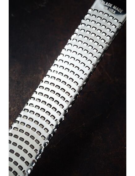 Microplane Zester. Τύπος προϊόντος: Ράσπα τρίφτης, Χρώμα προϊόντος: Μπλε, Ανοξείδωτο ατσάλι, Υλικό: Ανοξείδωτο ατσάλι. Χώρα προέλευσης: Ηνωμένες Πολιτείες. Πλάτος: 35 mm, Βάθος: 30 mm, Ύψος: 325 mm. Ποσότητα ανά συσκευασία: 1 τεμάχια