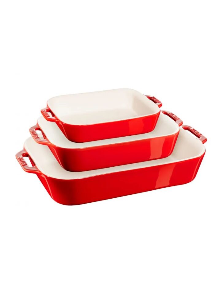 Staub 3-Piece Rectangular Ceramic Bakeware Set, Cherry Red