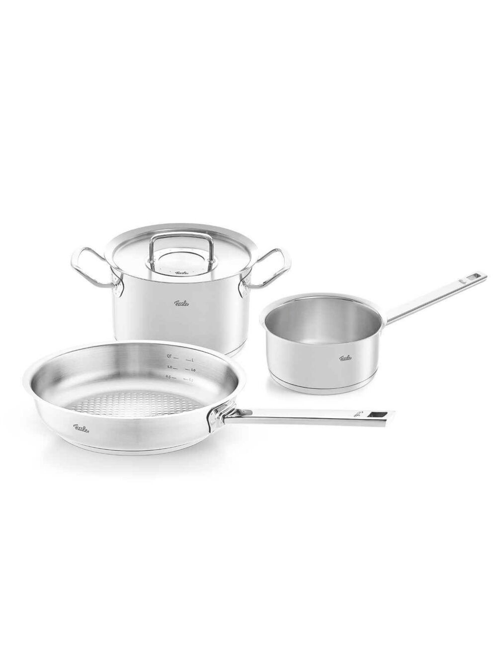 Fissler 084-378-03-000/0. Χρώμα προϊόντος: Ανοξείδωτο ατσάλι, Υλικό: Ανοξείδωτο ατσάλι, Χρώμα λαβής: Ανοξείδωτο ατσάλι. Διάμετρος κατσαρόλας: 16 cm, Διάμετρος κατσαρόλας 2: 24 cm, Διάμετρος τηγανιού: 20 cm. Αριθμός προϊόντων που περιλαμβάνονται: 3 τεμάχια, Αριθμός κατσαρολών: 2 τεμάχια, Αριθμός τηγανιών: 1 τεμάχια