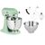 KitchenAid Artisan. Χωρητικότητα κάδου: 4,8 L, Χρώμα προϊόντος: Πράσινος (Πράσινο), Τύπος ελέγχου: Μοχλός. Υλικό μπωλ: Ανοξείδωτο ατσάλι, Υλικό περιβλήματος: Μέταλο. Ισχύς: 300 W, Τάση εισόδου AC: 220 - 240 V, Συχνότητα εισόδου AC: 50/60 Hz. Πλάτος: 240 mm, Βάθος: 370 mm, Ύψος: 360 mm. Πλάτος συσκευασίας: 406 mm, Βάθος συσκευασίας: 273 mm, Ύψος συσκευασίας: 413 mm