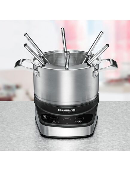 Rommelsbacher F 1200. Αριθμός ατόμων: 6 άτομο(α), Χωρητικότητα: 1,5 L, Χρώμα προϊόντος: Μαύρος (Μαύρο), Ανοξείδωτο ατσάλι. Υλικό περιβλήματος: Ανοξείδωτο ατσάλι, Υλικό δοχείου: Ανοξείδωτο ατσάλι. Ισχύς: 1200 W, Τάση εισόδου AC: 230 V. Πλάτος: 235 mm, Βάθος: 290 mm, Ύψος: 270 mm