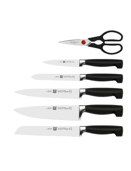 ZWILLING 35145-007-0. Τύπος προϊόντος: Σετ μαχαιριών, Υλικό λεπίδας: Ανοξείδωτο ατσάλι, Υλικό λαβής: Πλαστικός. Βάρος: 2,59 kg. Αριθμός προϊόντων που περιλαμβάνονται: 6 τεμάχια