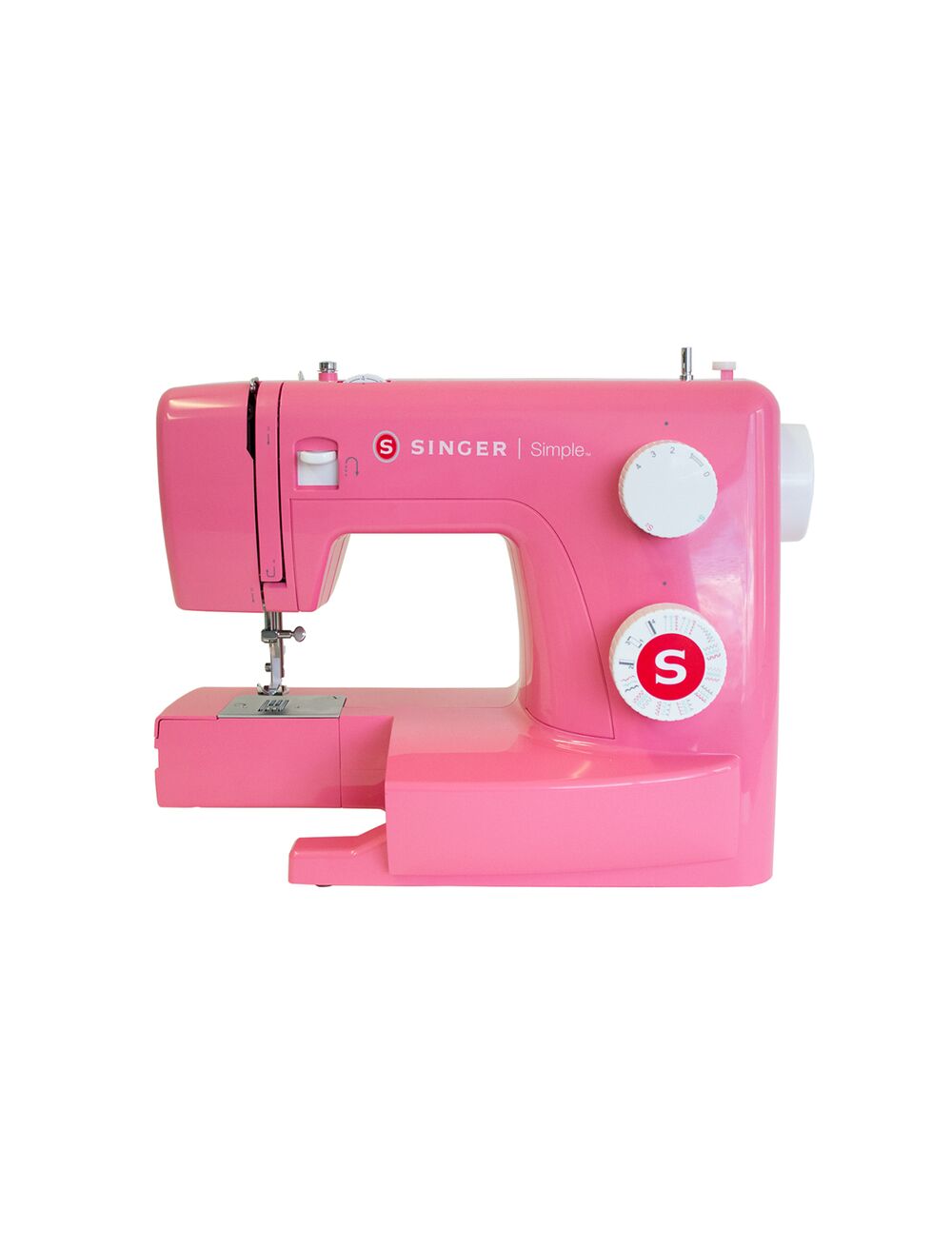 SINGER Simple 3223R. Χρώμα προϊόντος: Κόκκινο, Τύπος: Ημι-αυτόματη ραπτομηχανή, Λειτουργίες ραπτομηχανής: Ράψιμο. Τύπος τροφοδοτικού: Ηλεκτρομηχανολογικές. Περιλαμβάνονται εξαρτήματα ραπτομηχανής: Buttonhole foot, Cover