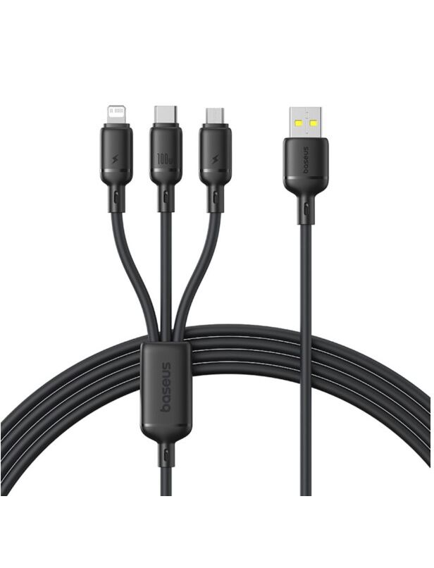 Baseus Rapid Series 3-in-1 USB-A 100W 1.5m, Schwarz
